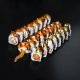 6 nigiri salmón, 6 hosomaki salmón, 8 uramaki salmón aguacate, 4 sashimi salmón